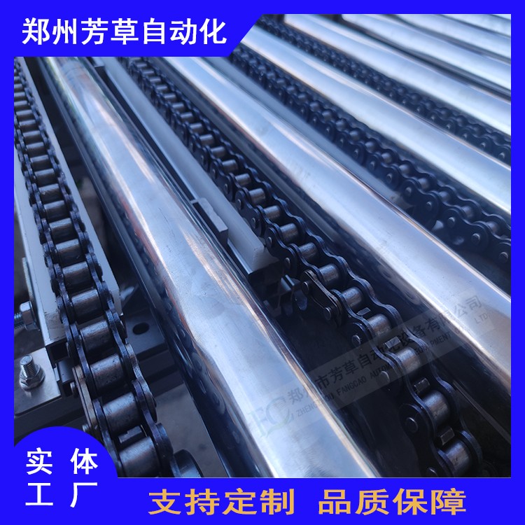 鄭州市芳草自動(dòng)化設(shè)備有限公司 動(dòng)力滾筒輸送線設(shè)備作為輸送設(shè)備中的一種主要輸送配件,在物品的運(yùn)輸中是常見的輸送機(jī)械,適用于多種行業(yè)的物流輸送設(shè)備,比如醫(yī)藥、食品、建材、倉儲(chǔ)、日用品都適用,滾筒輸送線較適用于平底物品的輸送,能夠?qū)崿F(xiàn)多種共流輸送的功能,滾筒線之間易于銜接過濾,可用多條滾筒線及其他輸送機(jī)或?qū)C(jī)組成復(fù)雜的物流輸送系統(tǒng),完成多方面的需要,特點(diǎn):輸送量大、速度快、運(yùn)轉(zhuǎn)輕快等。